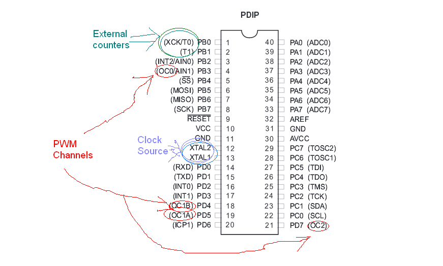Counters : Now we have done counting and we need to count something external, like objects on conveyer belt from sensor or the ppr of an encoder, what we have to do here is in Above chart there is this option to count the external Source at the very end. Just turn it on and boom its gonna start counting your external objects. T1 or T0 are the pins as stated above are the people to whom you should join your countable input and output again will be stored to TCNTx peoples pockets.Simple right? Yes it is. 😀 Now go try it.