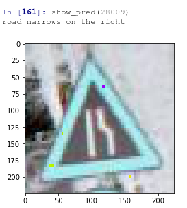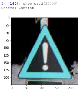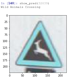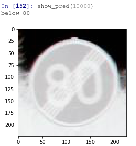 signs=['20','30','50','60','70','80','below 80','100','120','No passing','No overtaking by heavy vehicles','Right of way at next crossroad','priority road','Give way','stop','No vehicles','No vehicles over 3.5Tons','No entry','General Caution','Dangerous Curve to left','Dangerous Curve to right','Double curves to left','Bumpy road','slippery road','road narrows on the right','Roadworks','Traffic Signal','Pedestrians','Children Crossing','Bicycle Crossing','Road freezes easily and is then slippery','Wild Animals Crossing','No Parking','Turn Right','Turn Left','Ahead only','Straight or Right','Straight or Left','Keep Right','Keep Left','Roundabout','End of No Overtaking','End of No Overtaking by Heavy vehicles' ]def show_pred(i):